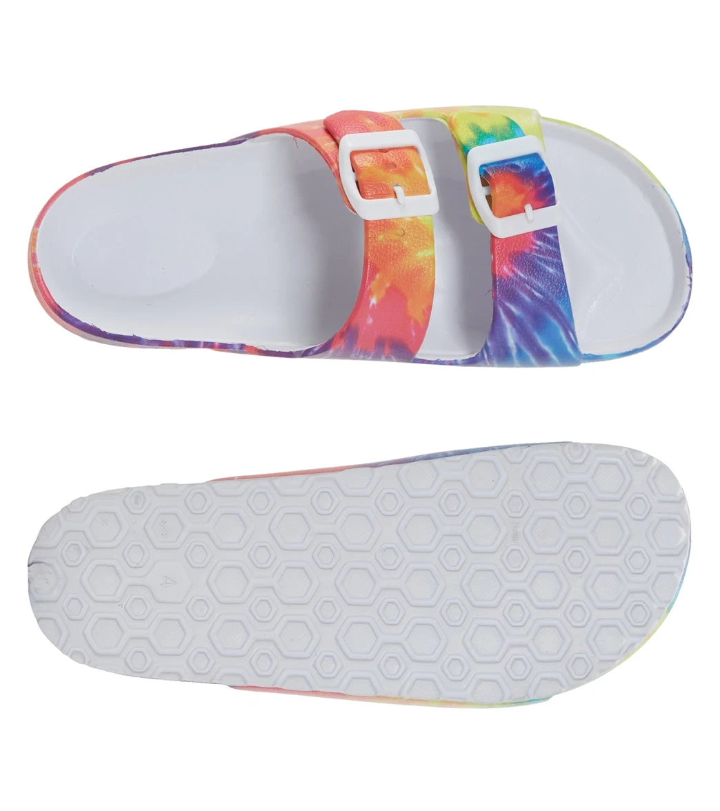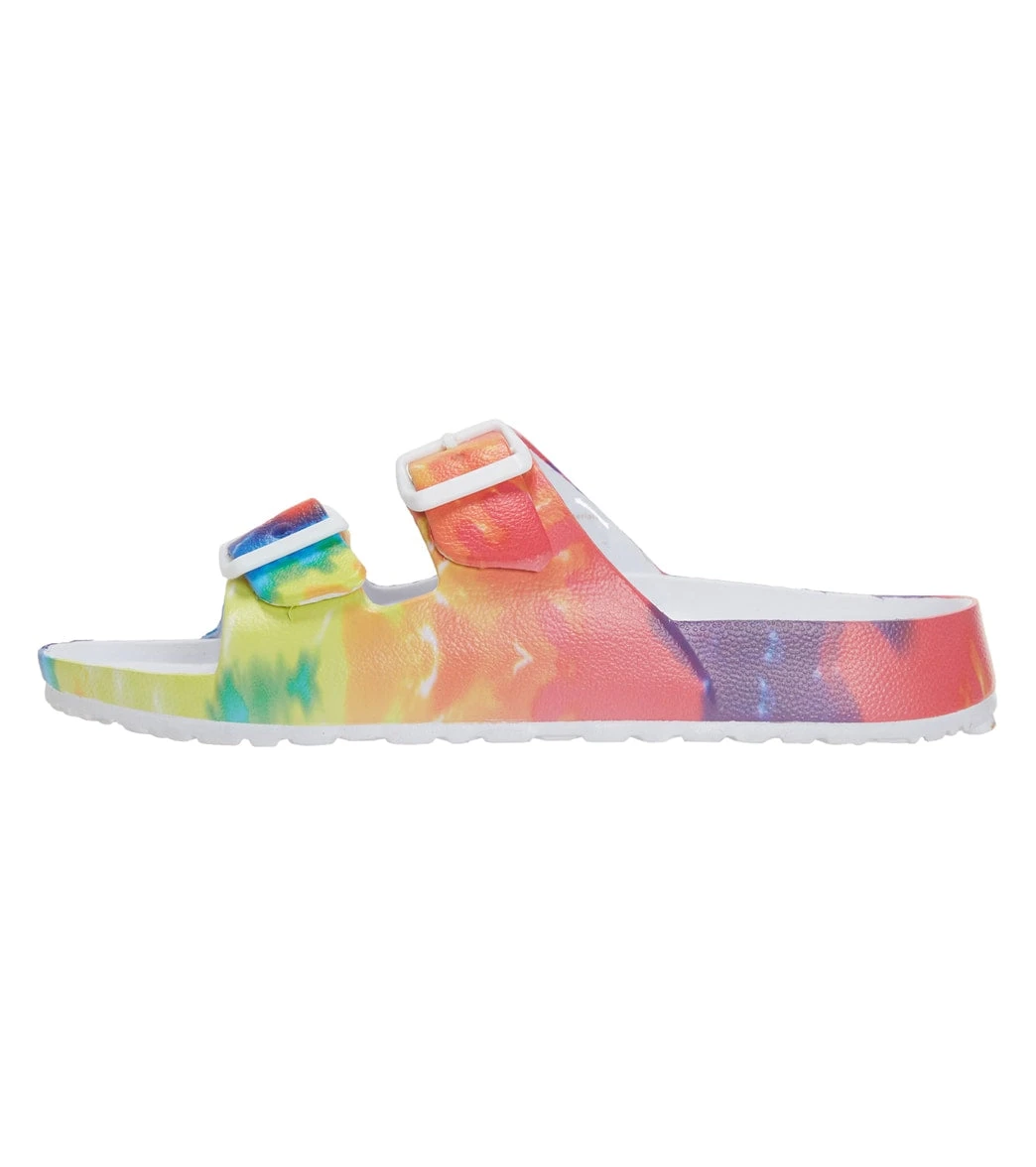 - One-piece injection molded solid, multi-color or printed EVA with adjustable buckle vamp straps
