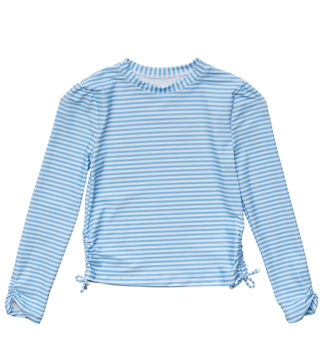 Explore the underwater world by wearing the Snapper Rock Girls’ Cornflower Stripe Long Sleeve Rashguard (Toddler, Little Kid, Big Kid).