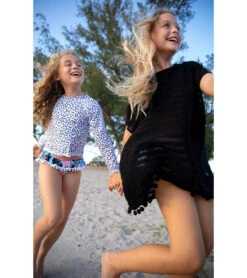Wild zebra stripes and frilly ruffles charm the Feather 4 Arrow Girls’ Sandy Toes Long Sleeve Two Piece Set (Toddler, Little Kid) with four-way stretch and UPF protection to keep your beach babe safe in the sun.
