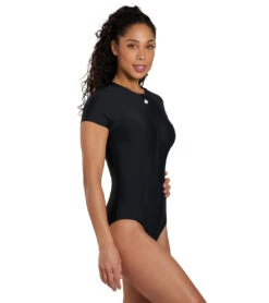 Radiate confidence when step onto the swim scene in the cute stylings of the Next by Athena Good Karma Malibu Zip Short Sleeve One Piece Swimsuit. Made out of functional fabric that’s perfect for all kinds of beach activities, you’ll love having this as a part of your water wardrobe.