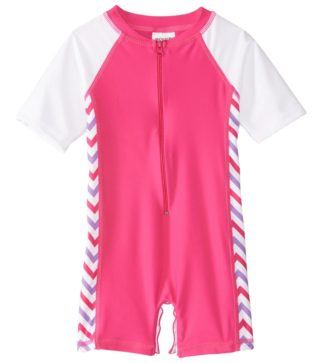 Let your baby splash and play without getting sunburned with the Sporti Infants’ Unisex UPF 50+ 3/4 Sleeve Sun Suit. With a 3/4th sleeve cut for maximum coverage, this sunsuit features a high neck, stretchy fabric, and a front zip entry for easy on and off.