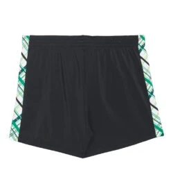 - Elastic waist trunk with plaid print inset at sideseams