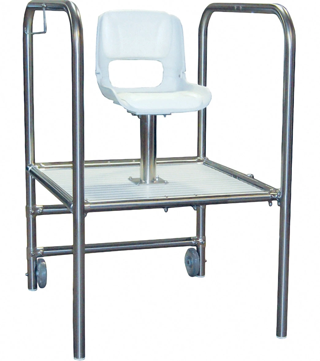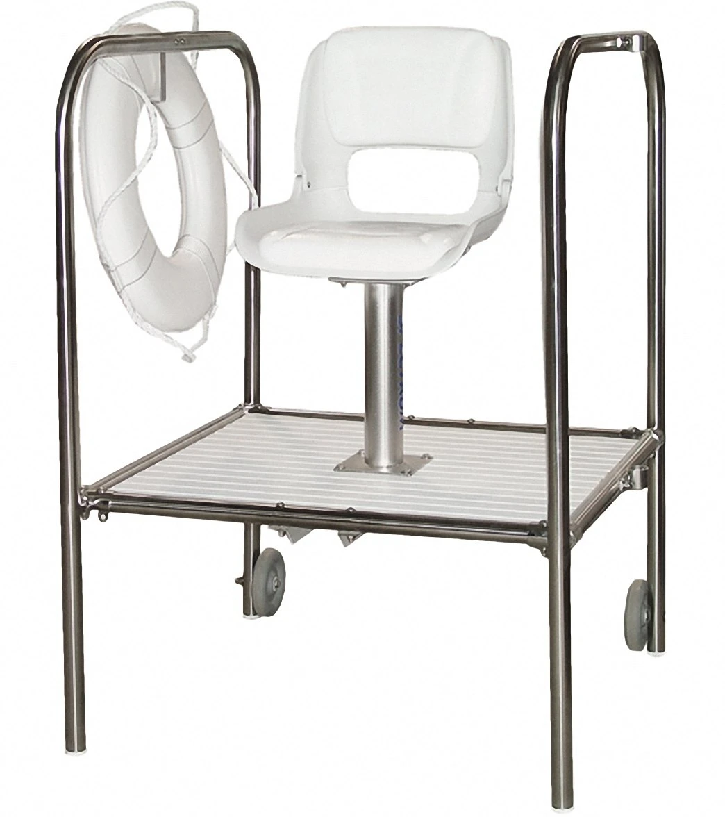 - Moveable lifeguard chairs include wheels for easy transport.