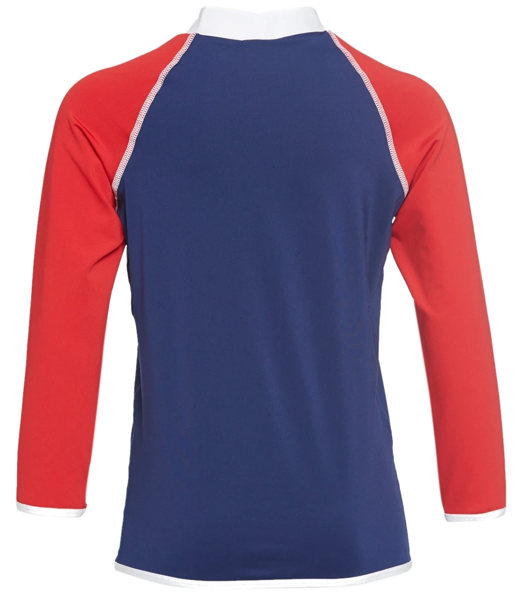 Keep him covered with the TYR Boys’ Long Sleeve Solid Rashguard. Perfect for the beach, the pool, or the lake, this bold rash guard offers a great fit for hours of fun-in-the-sun. The long sleeves and UPF 50+ properties work together to keep you covered from the sun all day long.