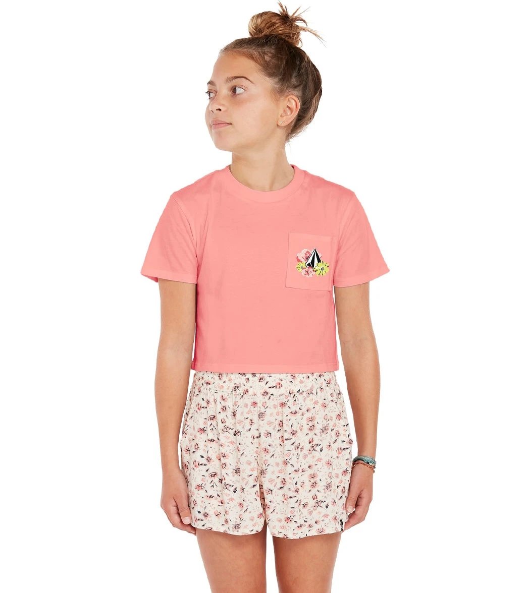 Tee it up on the beach or out on the town in the Volcom Girls’ Pocket Dial Tee (Little Kid, Big Kid).